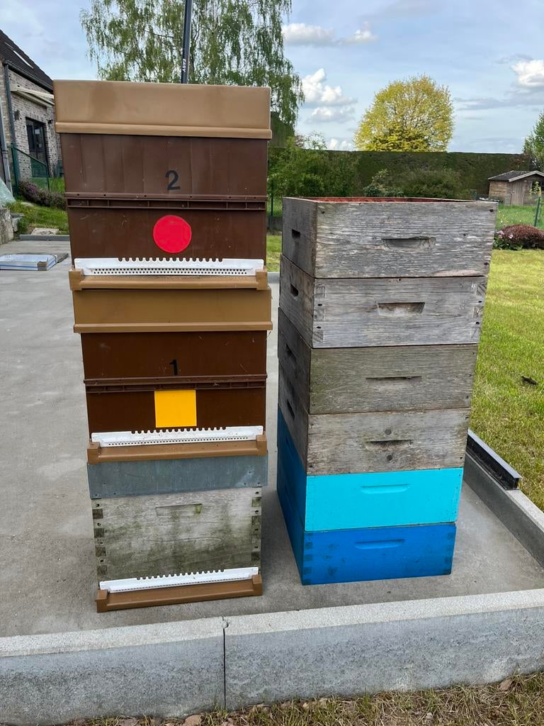 10 janv. 26SaskiaHeist-Op-Den-Berg - Lot materiel apicole ruches et haussesLot matériel apicole comprenant 2 ruches nicot pvc complètes avec nourrisseurs nicot, 1 ruche bois à tenons nourrisseur nicot et toit en acier galvanisé ,ainsi que 6 hausses en bois . Nettoyage et désEnlèvement