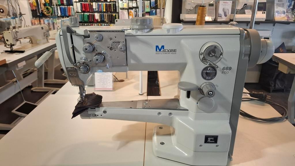 - Machine à coudre à triple transport à bras libre Adler 669Durkopp adler 669 avec plateau rabattable et cadre modifié. Servomoteur robuste pour un travail étape par étape. Sincro pour synchroniser la position de l'aiguille en haut/en dessous la machine esEnlèvement