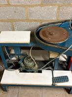 Ancien tour de potier mécanique, aussi appelé tournette ou tour lent. L'objet se compose d’une structure métallique, un disque d’entrainement actionné avec le pied, un axe et un plateau pour le tournage, un siège. Matériaux: métal, bois dimension...
