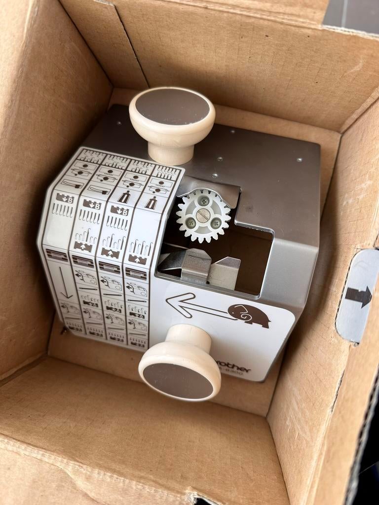 HierIngrid JacobsZelzate - Machine à broder Brother Skitch PP1Machine à broder brother skitch pp1 cadre de brodeuse 10cm x 10cm inclus: • 40 bobines de fil brother • 22 canettes prémbobinées • 1 rouleau de stabilisateur de broderie transparent macComme neuf Enlèvement