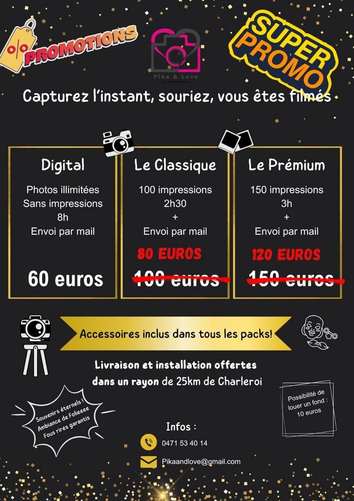 - PHOTOBOOTH pour Mariage, anniversaire,…Mettez une touche mémorable à vos mariages 💍, anniversaires 🥳 ou fêtes d’entreprise 👩🏼💻 grâce à notre photobooth en location 📸 150 € = 100 photos + déplacement sur bruxelles 40€ chaquNeuf Envoi