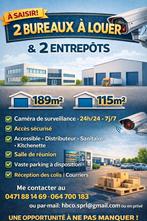 Aujourd'huiadBarchon + Partie De Cerexhe - Heuseux, De Evegnee - TigneeÀ louer – Entrepôt sécurisé 120 m² – Dison (Espace 58)Province de Liègeà louer – entrepôt sécurisé ±120 m² – dison (espace 58) à louer entrepôt d’environ 120 m², situé à l’espace 58 à dison, idéal pour stockage, activité professionnelle ou logistique. 🔒 Entrepôt sécurisé : • caméras de surveillance • accè...Barchon + Partie De Cerexhe - Heuseux, De Evegnee - TigneeAujourd'hui - Entrepôt a louer spy jemeppe sur sambreEntrepôt sécurisé avec entrée indépendante idéal pour mécanicien indépendant pneumatique ex…partie arrière du bâtiment à louer uniquement (partie avant show-room déjà occupé bureaux déjà occupé) voir