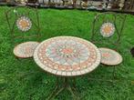 Hierdusaucy marie claudeBaileux - SET DE JARDIN EN FER FORGE ET CERAMIQUESuperbe ensemble comprenant 2 chaises pliantes et une table en fer forgé patiné et céramique. Mobilier état neuf et très pratique (se range aisément dans un petit chalet ou abris de jardin ) idéal teNeuf Enlèvement