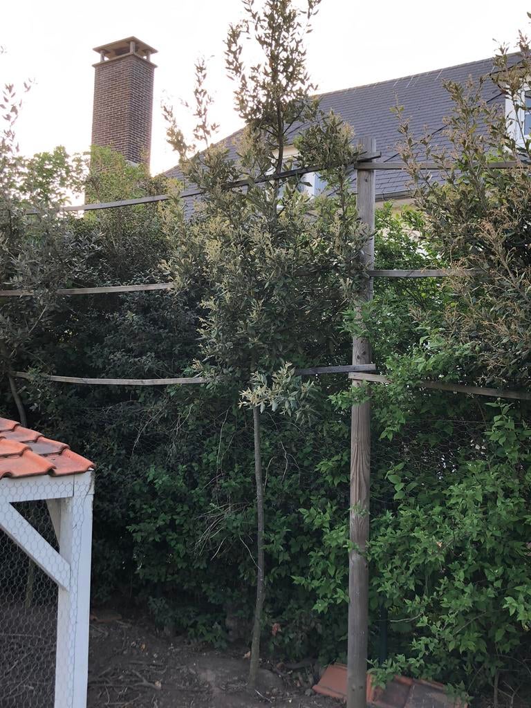 7 janv. 26ProsmanplantenMeerle - leilinde XLKoningslinde in leivorm 9 etage's per 30 cm. 1E etage op 140 cm. Symmetrisch geleidt. Stamomtrek 25-30 en 30-35 cm. Meermaals verplant en gesneden. Spanwijdte 210 cm. Totale hoogte ca. 400 Cm. FoEnlèvement