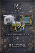Location de matériel festif pour particuliers, associations et communes. Vaisselle, tables, chaises, chateaux gonflables, matériel audiovisuel, machine à barbe à papa, etc... Pour toute demande : fierlant@ateliersdumidi.be
