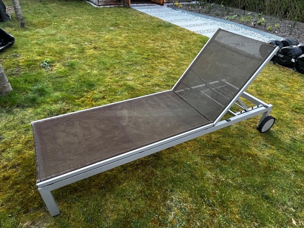 HierPeter VBWillebroeck - Chaise longue Bristol noire COMME NEUVEAluminium noir, debout à l'intérieur, comme neuf acheté auprès d'exterioo qualitéComme neuf Enlèvement