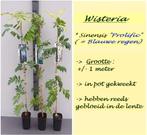 - GLYCINE (WISTERIA SIN.), DÉJÀ FLEURS AU PRINTEMPS, 16€/pièceDe belles plantes glycine ( wisteria sinensis 'prolific' ) , connus des belles et nombreuses grappes de fleurs bleu foncé. Dans un pot de 3 litres, accroché de bambou. Très bon système racinaiEnlèvement ou Envoi