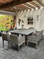 Structure : aluminium, plateau en verre laqué blanc avec revêtement en pierre, gris foncé, 6 chaises, aluminium, laqué blanc avec assise gris foncé, lavable et résistant aux intempéries (le nouveau prix était de 1200,00€), offre à partir de 5,00...