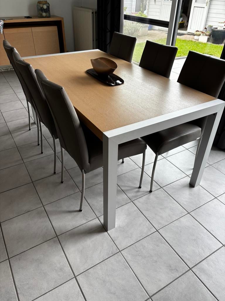 16 mars 26Max HaekensTremelo - Table de jardin avec chaises.Table en aluminium avec feuille en trespa (marron clair) 80x150 cm, extensible jusqu'à 230 cm via une pièce extensible. 6 Chaises en aluminium de couleur assortie. Tout est en parfait état. Je leComme neuf Enlèvement