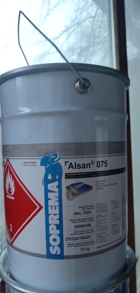 - Résine d étanchéïté Soprema Alsan 075 bidon de 10kg neufSoprema alsan 075, bidon de 10kg pour votre projet de toiture. Neuf, jamais ouvert. Résine hautement flexible, produit d’étanchéité à base de pmma utilisé pour étancher/traiter des détails difficilesNeuf Enlèvement