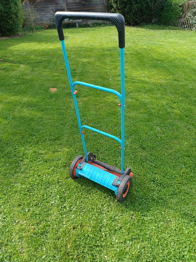 - Tondeuse à gazon GardenaComme neuf, j'ai pensé le faire à la main car il fonctionne mieux grâce à la tondeuse à rouleau. Mais mon dos ne fonctionne pas correctement, c'est trop difficile pour moi. Tu peux y aller pouComme neuf Enlèvement