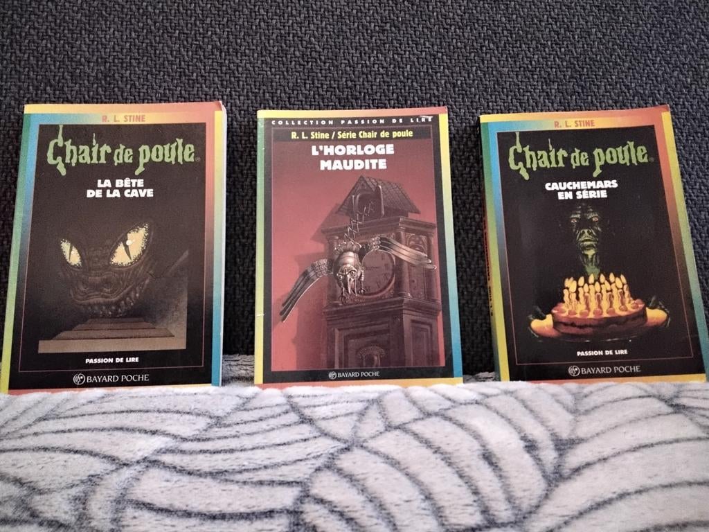 4 sept. 22maria-annaWingene - Chair de poule 3 titres R.L. Stine BayardTtbe. A venir chercher sur soignies ou charleroi. Peuvent être livrés pour 5 euros en belgique. 2 Euros pièce. Les 3 pour 5 euros.Comme neuf Enlèvement ou Envoi