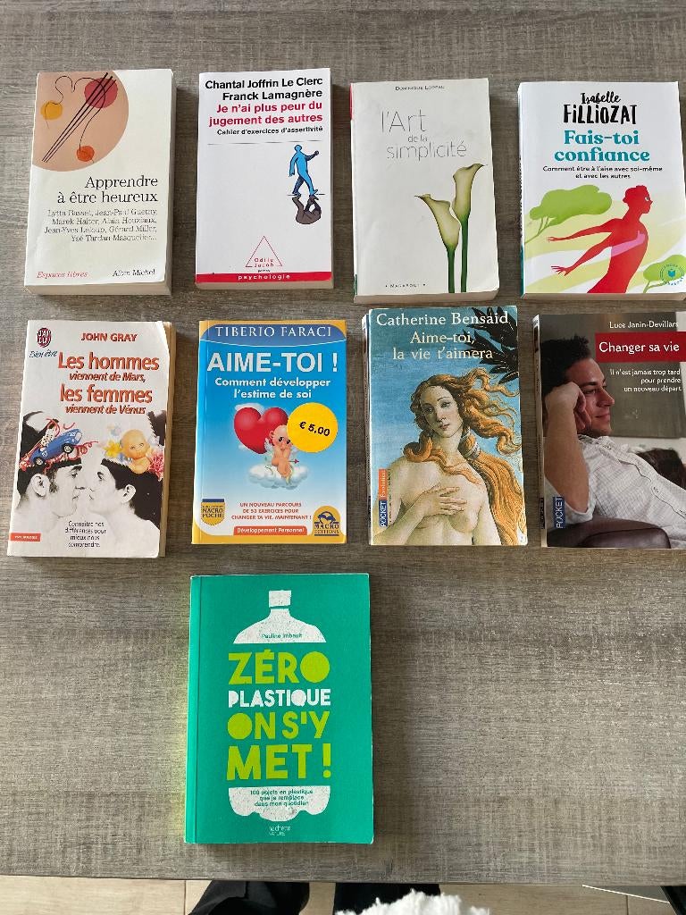 3 avr. 26Lysandre1978Schaerbeek - Lot de 17 livres sur le développement personnelBonjour, je vends un lot de 17 livres sur le développement personnel (titres voir photos) 8 brochés dont 1 avec cd et 9 poches état correct. A venir chercher sur braine-l'alleud paiement en mainsUtilisé Enlèvement