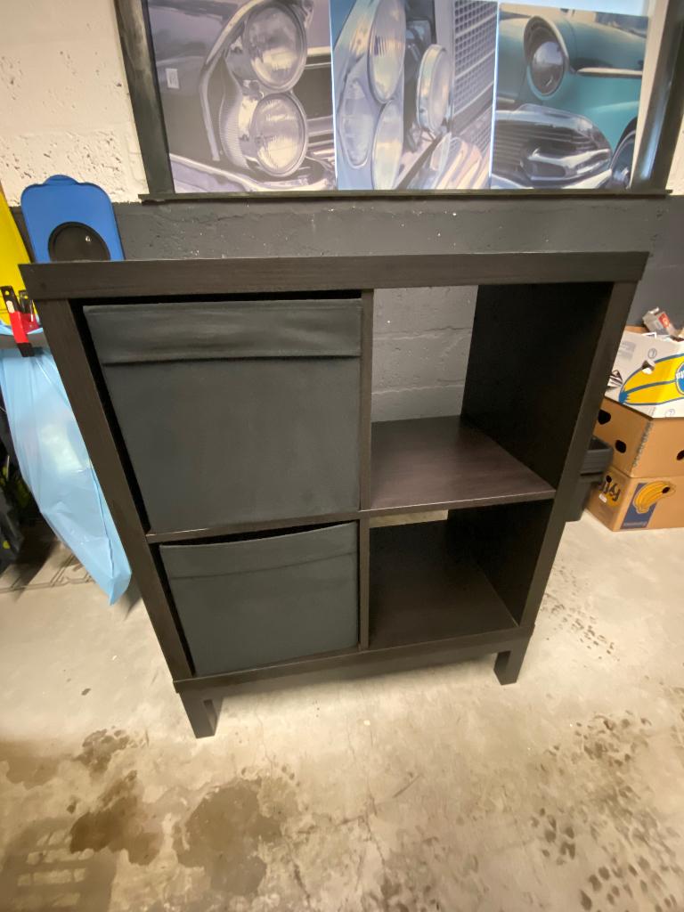 - Kallax kastKallax kast zwart hoogte met voet 93,5 breedte 76,5 diepte 39 met twee manden + onderstelComme neuf Enlèvement
