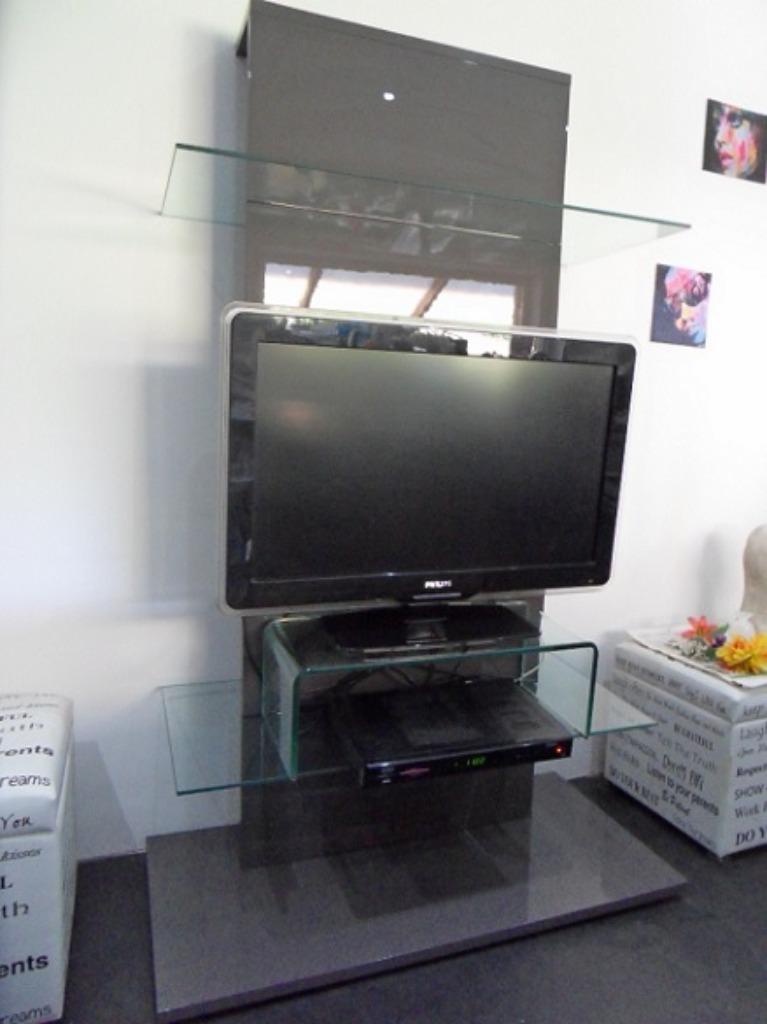 27 mars 26Chou&choupette431Gilly - Meuble TV gris laqué contemporain & design - TBE !Meuble tv design de qualité gris laqué etagères en verre épais l 104 x p 50 x h 168,5 cm nb : le support en verre sur lequel est posée la tv ainsi que les appareils présents ne font pas partie de la vUtilisé Enlèvement