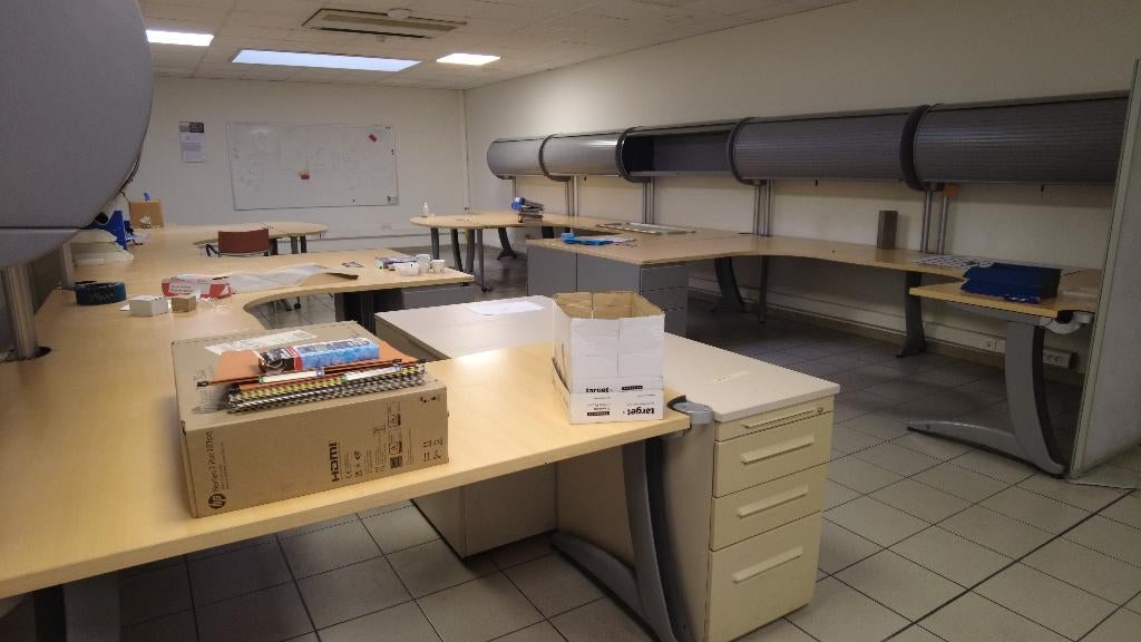 - Lot bureaumeubelenLot bureaumeubelen van de west-vlaamse kantoorinrichtingsspecialist bureau modern. Merk renz afzonderlijke delen vormen samen u-vorm voor 2 personen. 1 Vast ladeblok per u. Hoge opbergkasten (tambourUtilisé Enlèvement