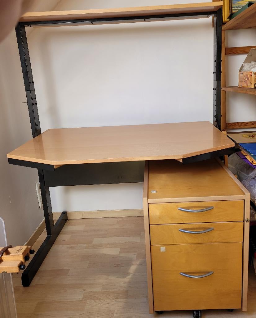 Aujourd'huiKatiaHMiecret - Bureau et chaiseBureau 220 x 50 avec chaise et tiroir à donner à woluwe saint lambert cause demenagement. Present un griffe à retoucher (seulement le coleur)Utilisé Enlèvement