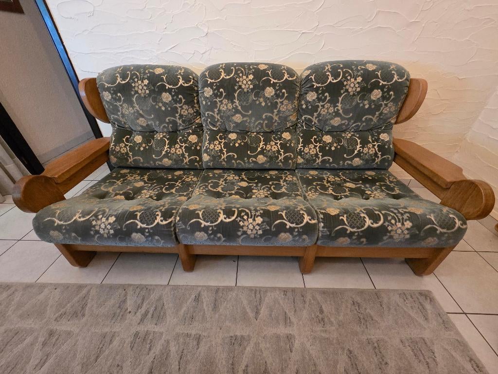 - Salon chêne massifDivan en chêne massif de trois places mesures : hauteur 90cm, largeur 2m10, profondeur 95cm. Deux fauteuils en chêne massif (traces d'usures visibles) mesures : hauteur 90cm, largeur 88cm, profondUtilisé Enlèvement