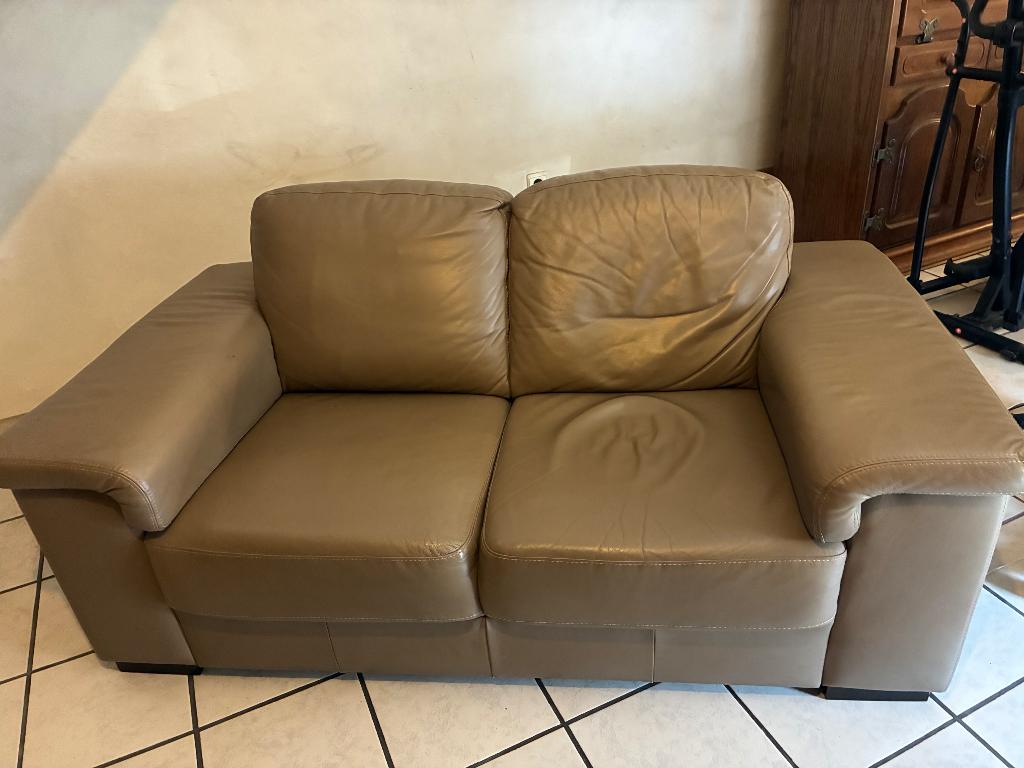 21 avr. 26TousLouIsieres - Canapé 2 places Franco Ferri taupeMagnifique canapé 2 places en cuir de haute qualité de franco ferri. Chaise en très bon état.Utilisé Enlèvement Deux personnes