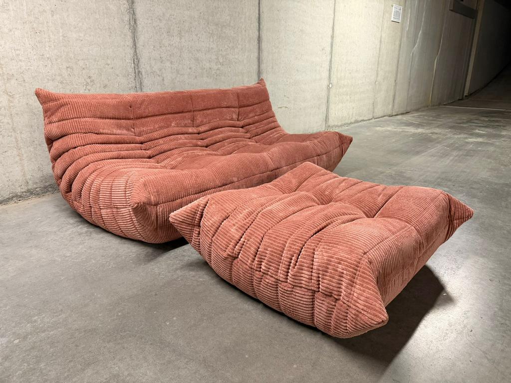 - Siège 3 places et pouf Togo Old Pink en velours côteléChaise 3 places togo avec pouf en velours côtelé imprégné très résistant. Couleur : vieux rose (couleur très tendance en ce moment) siège à trois places (174 de large) et pouf à l'état neufEnlèvement ou Envoi