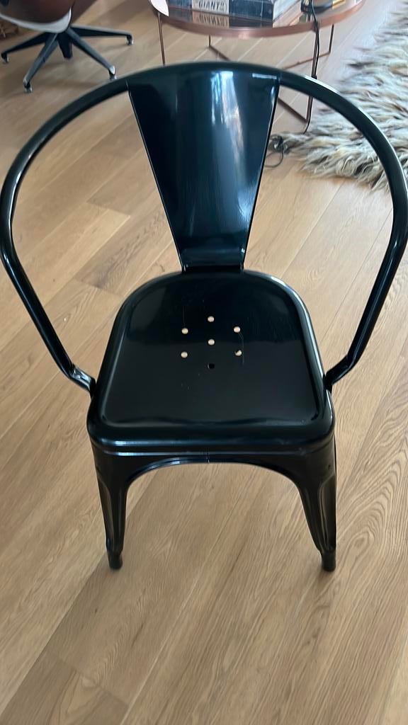 21 mars 26laurenthartePerwez - Chaises Tolix - noires - version largeChaises tolix originales - en très bon état - pour usage intérieur et extérieur - accoudoir large - 4 pièces - même 12o euros payés par pièce - le prix est pour 4 pièces.Comme neuf Enlèvement