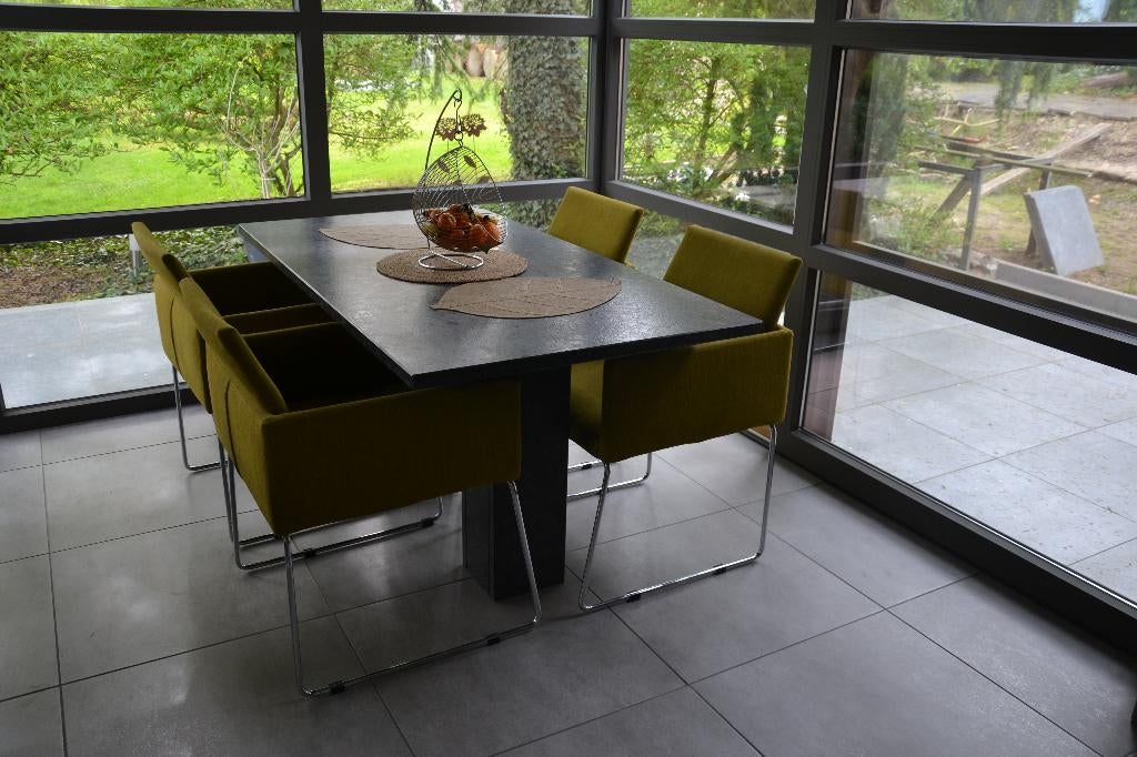Avant-hierPbaltGent - Table salle à manger avec chaisesTable h 78 x l 70x 110 avec rallonge 170 une griffe sur une chaise verte voir photoEnlèvement