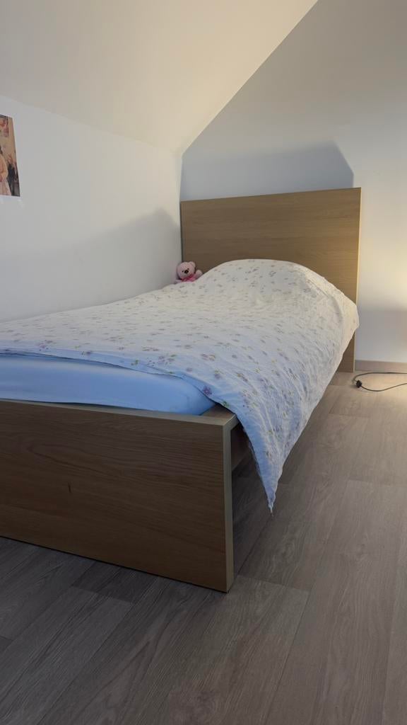 HierTOPSHOP LedeLede - slaapkamer in Eik (met 2 delige ergosleep lattenbodem)2 x lattenbodem ergosleep 195 x 70 cm hoofd lattenbodem is verstelbaar. 2 X sleepy matrassen enkel op geslapen met matrasbeschermer. Zo goed al nieuw, heeft in de logeerkamer gestaan. 2 Nachtkastjes mEnlèvement