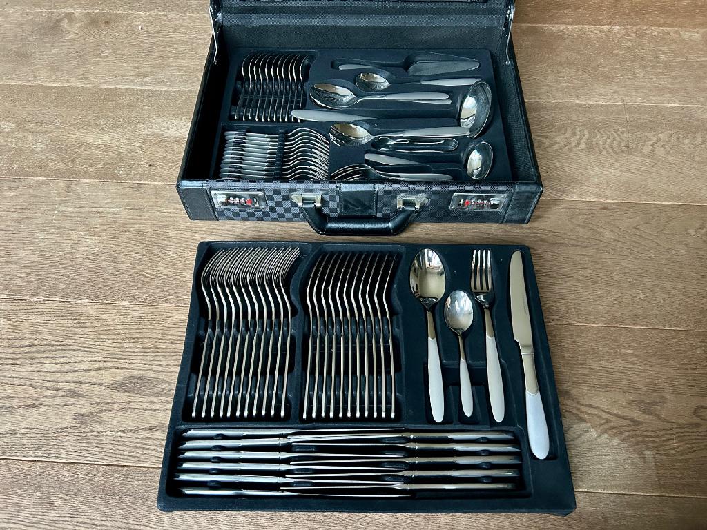 18 mars 26WillemBooischot - Bestek koffer 70 delig en 8delig messen set masterline70 delig best koffer 8delig messen set nieuw huwelijk geschenk nooit gebruikt merk masterlineEnvoi