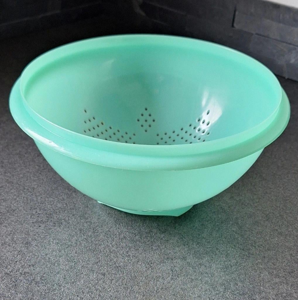 - Ensemble de 3 Tupperware VintageEnsemble de 3 tupperware vintage : 1 passoire, 1 pichet et une boîte couleur vert mentheUtilisé Enlèvement ou Envoi