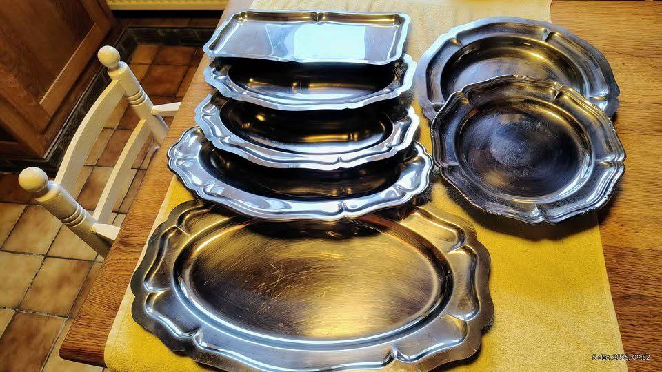 - plats en inox5 plats en inox 18/10 allongés, le plus grand fait 50 cm et le plus petit 40. 2 Plats ronds 27 et 33 cm. Venir chercher à hannut hannut, walUtilisé Enlèvement
