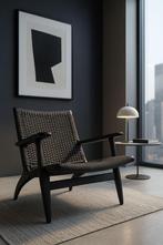 - Fauteuil CH25-Hans J.Wegner pour Knoll- Danemark-1950Ce fauteuil fait partie de la série emblématique de wegner pour knokke, souvent appelée la « ch collection » ici black édition matériaux : bois de chêne et corde dimensions : largeur (71cm), profondeuUtilisé Enlèvement