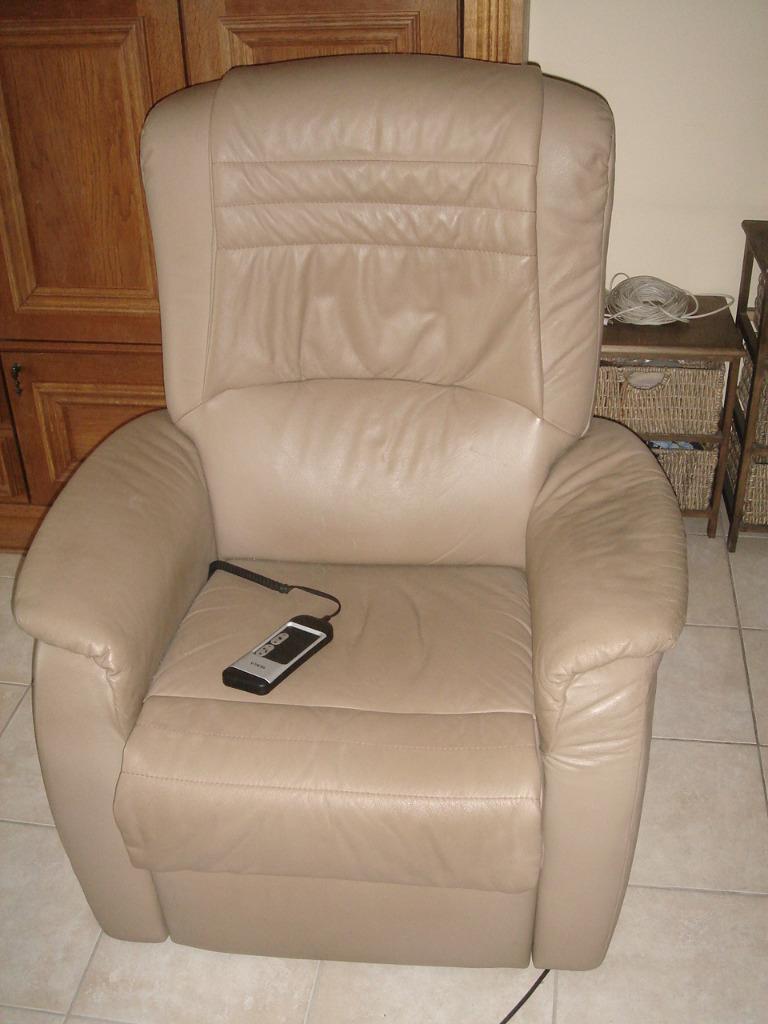 16 mars 26d.rHasselt - Fauteuil relax électrique HUKLA en cuir (anthracite)Fauteuil relax / inclinable électrique hukla haut de gamme en cuir (gris foncé / anthracite). Le fauteuil a très peu servi et je le vends suite à un réaménagement. ÉTat: état impeccable : aucune déchiComme neuf Enlèvement