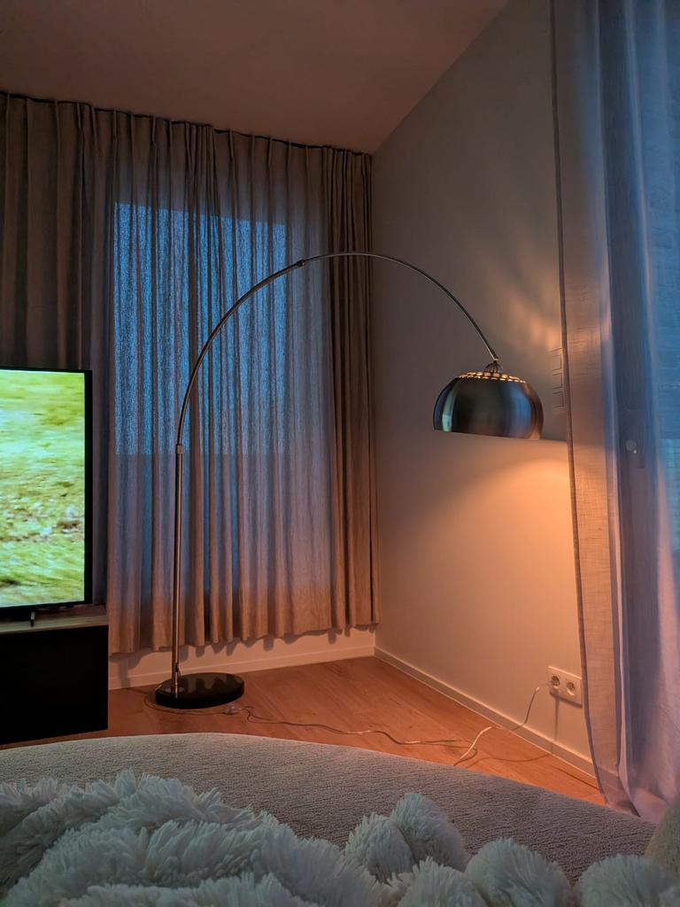 25 mars 26saramarilynHoegaarden + Deel Van Kumtich + Deel Van TienenLampe à arc chromée de style années 1970 en parfait étatVintage retro jaren 70 jaren 60 eames design panton vitra Comme neuf Enlèvement 200 cm ou plusélégante lampe à arc chromé de style rétro dans le style « space age », comme dans les années 60 et 70. Avec abat-jour chromé et base en marbre. En parfait état. Dimensions : hauteur totale : +/- 230 cm largeur totale : +/- 182 cm profondeur : +/- 39...Hoegaarden + Deel Van Kumtich + Deel Van Tienen25 mars 26 - Lampe sur piedLampe sur pied en acier et abat-jour noir. Avec interrupteur. Abat jour avec diffuseur de lumière permettant de ne pas être ébloui. Hauteur de l'arc 2m. Ce qui permet de passer en dessous sans seComme neuf Enlèvement