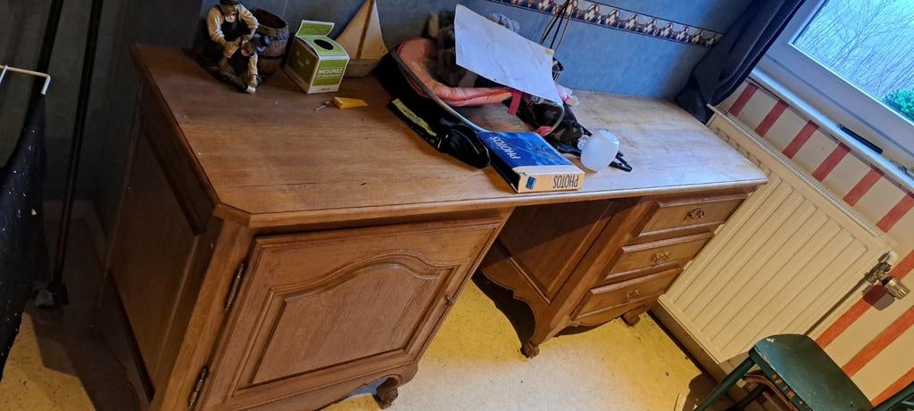 28 mars 26MarcUccle - Grand bureaux à vendre en chêne massifL'état est correct, fabrication à la main , il fais 2m de long ,+-1m de haut et 60 de profondeur .Enlèvement