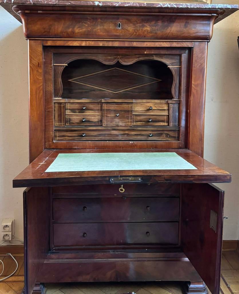Aujourd'huiJoris ThysAntwerpen - Magnifique secrétaire à abattant antique de style EmpireCe majestueux secrétaire à abattant est un brillant exemple de l'artisanat du xixe siècle et apporte instantanément du caractère à votre intérieur. Principales caractéristiques : type de bois : faEnlèvement