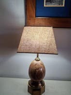 - Tafellamp - TrabertinoElegante lamp in barbier-geïnspireerde, midden-eeuwse moderne stijl, gemaakt van trabertino-marmer met een gepatineerde messing kolom, 36 cm hoog met een 14×14 cm vierkante basis, gewicht circa 5 kg,