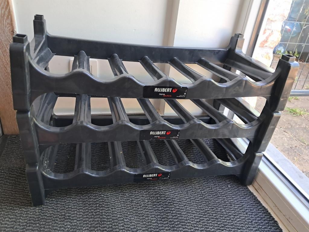 9 janv. 26www•birdshopchristina•comSchepdaal - CASIERS A BOUTEILLESCasiers en plastique. 26 Disponibles empilables pour 100.00€. Peuvent être vendus à la pièce à 4€. Payable cash à l'enlèvement. Dimensions: 60 x 28 espace pour 6 bouteilles possibilité dComme neuf Enlèvement