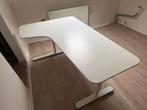 Bureau d'angle ikea, modèle mikael. Bureau pratique avec beaucoup de rangements très variés, tableau blanc magnétique. Longueur : 120 cm, largeur : 60 cm, hauteur : 180cm. Colonne de trois tiroirs