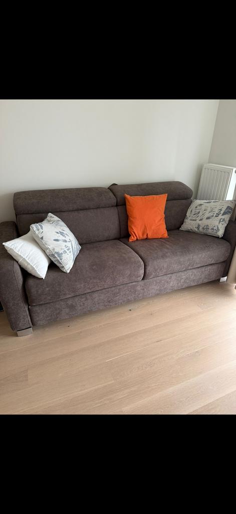 Aujourd'huiSolene BruyninckxWoluwe-Saint-Lambert - Canapé lit TEMPUR super qualitéCause déménagement : canapé lit brun avec matelas tempur 160 x 200 de qualité exceptionnelle. Canapé total = largeur 220, hauteur dossier 90, profondeur 100. En partie démontable. Voir détails sur phoEnlèvement