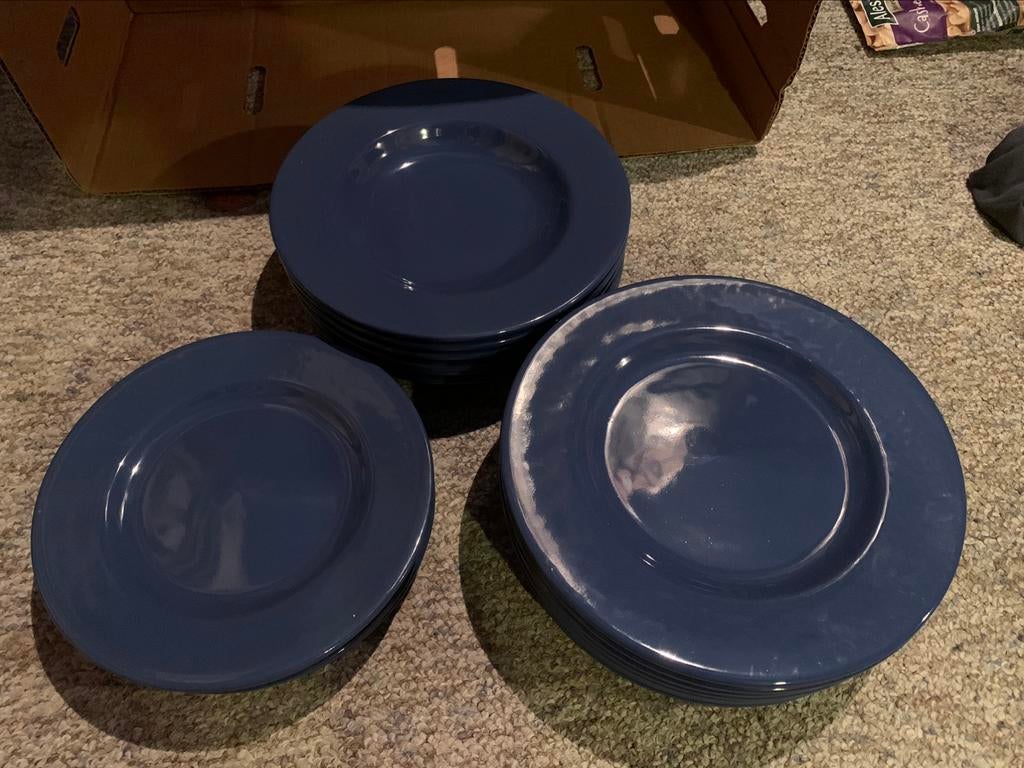 27 mars 26HildeMoen - Lot assiettes faience bleu foncé Carrefour 19 piècesLot d’assiettes en faience bleu foncé de la marque carrefour. 7 Assiettes profondes 22 cm 7 grandes assiettes 23,5 cm 5 petites assiettes 20 cm vendues en lot, pas a la pièce. 15€ le lotUtilisé