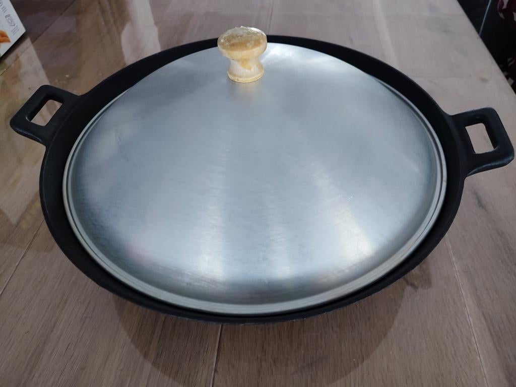 17 avr. 26christianSint-Stevens-Woluwe - Le creuset Poêlon avec couvercle - cocotte en fonte.Le creuset : poêlon avec couvercle - cocotte en fonte. En fonte noire. En bon état: petit coup intérieur (voir photo 13). 2 Becs verseurs. Dimensions: diamètre: 23cm (34cm avec la poignée). Poids: 3.5Enlèvement ou Envoi