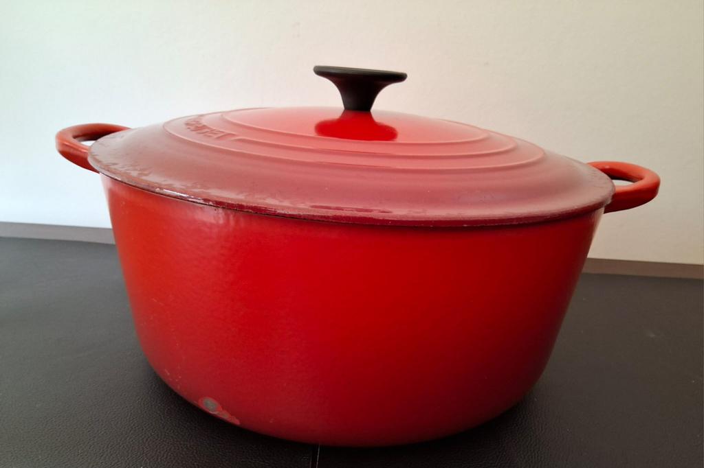 5 avr. 26La panneVeurne - marmite en fonte Le Creuset 'La Coquelle' - 4,5 lAuthentique le creuset en fonte émaillée, modèle « la coquelle » n° 45 - design de raymond loewy, modèle de 1950 avec un fond plat assez rare en excellent état, sans éclats ni dommages, poids 5 kg, diUtilisé Enlèvement ou Envoi
