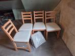 - 4 chaises de cuisineNous vendons 4 chaises de cuisine en bon état. Il y a 1 siège supplémentaire (encore neuf en plastique) car nous avons remplacé un cadre une fois. Les chaises de cuisine sont d'ikea.Comme neuf Enlèvement