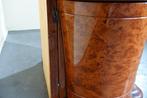 Buffet italien art déco en noyer brun, lanpas, datant de 1950–1960, profond 125 cm, largeur 58 cm, hauteur 77 cm, 1 pièce, état raisonnable avec absence du tiroir/porte supérieur et dommage sur la charnière à l’arrière.