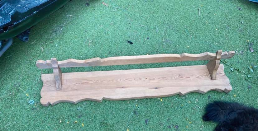 - Étagère pour vestiaire ou cuisine cottageélément à customiser pour entrée pouvant servir de vestiaire ou pour élément cuisine cottage . En bois , robuste avec de belles découpes mais le bois est à poncer ou peindre (traces de crayons) a récuComme neuf Enlèvement