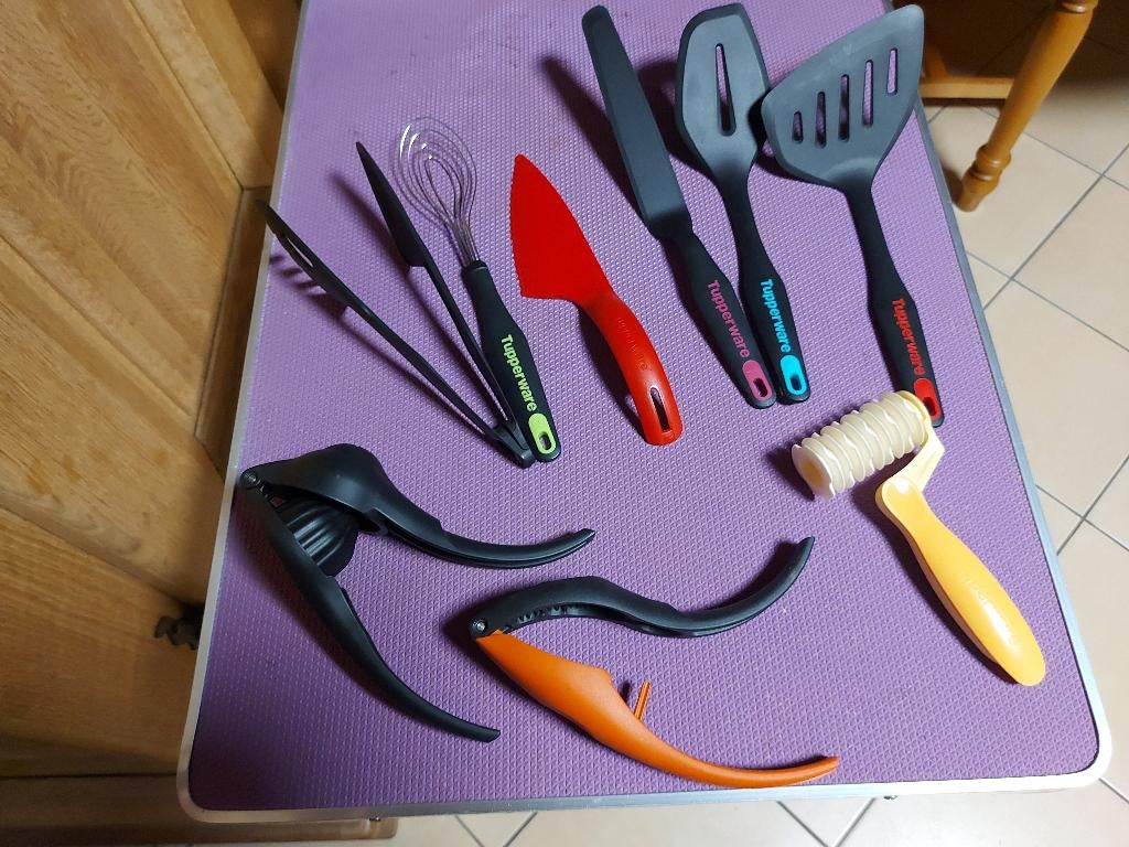 10 août 25PralineSchaerbeek - Accessoires TupperwareAccessoires tupperware 5 € / pièce spatules, presse-citron, casse noix-noisettes avec dénoyauteur cerises , découpe pâtesComme neuf Enlèvement