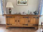 Bahut en chêne cérusé 2m27 de long 49 cm de large 75 cm de haut un coup sur dessus 4 portes avec clés intérieur planche partout a