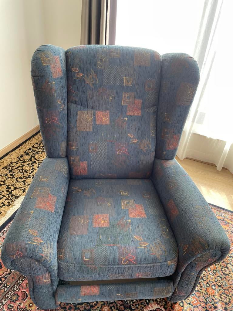 Avant-hierDelphinePepinster - fauteuilFauteuil bleu à donner en tissu doux. Il y avait une fonction avec pied surélevé mais il ne fonctionne plus. Il aura besoin d'un bon nettoyage mais il reste très correct et surtout très confortablEnlèvement