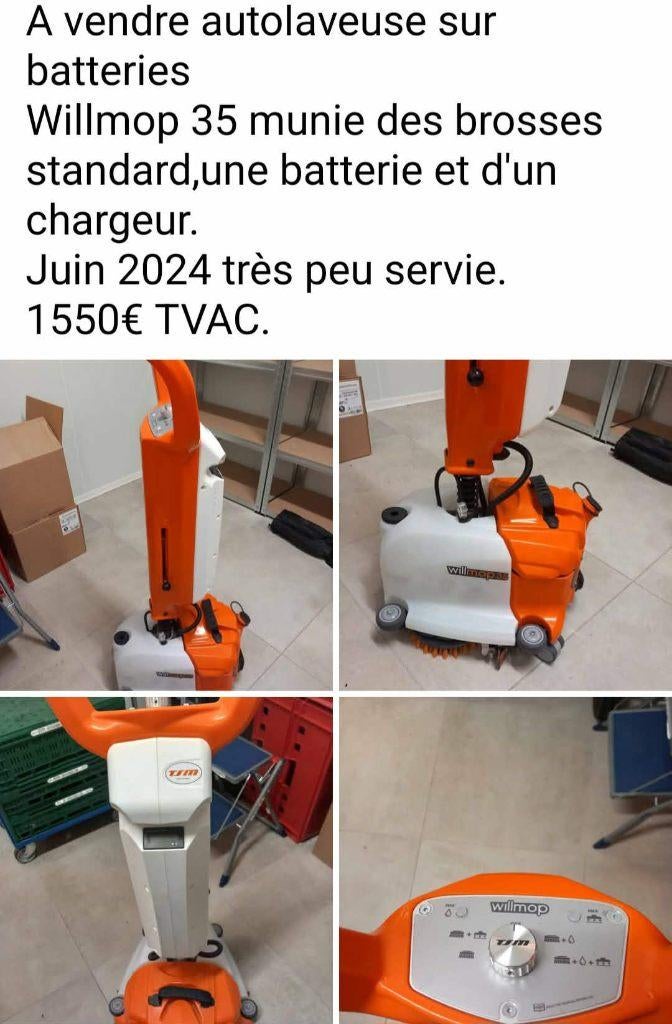 - Autolaveuse Willmop 35Autoclaves 2024 peu utilisée surface de nettoyage plus de 1400 m2 pivote à 360 ° batterie chargeur prix achat 3230 € tva comprise neuve vendue 1550 € tva compriseEnlèvement