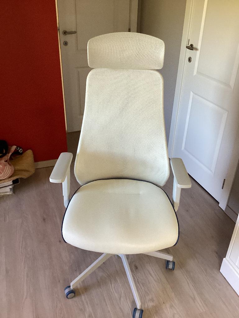 24 mars 26Anthony Van HoeyAntwerpen - Chaise de bureau blanche IKEA 'SNILLE'Chaise de bureau blanche avec trous de ventilation réglable en hauteur la chaise est en très bon état les roues tournent toujours parfaitement possibilité de placer un oreiller sur la chaise de la colComme neuf Enlèvement ou Envoi